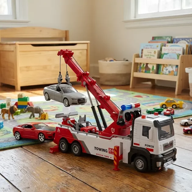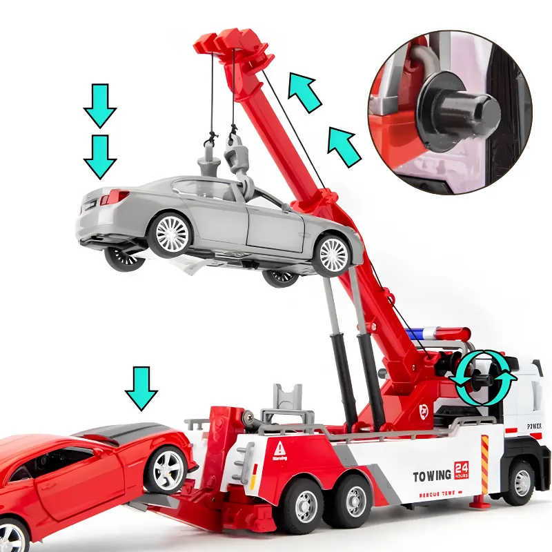 Broren min og jeg elsker å leke redning med denne tauebilen, særlig med de kule krokene og de lyse lysene. Dørene kan åpnes og det er virkelig morsomt å bruke!