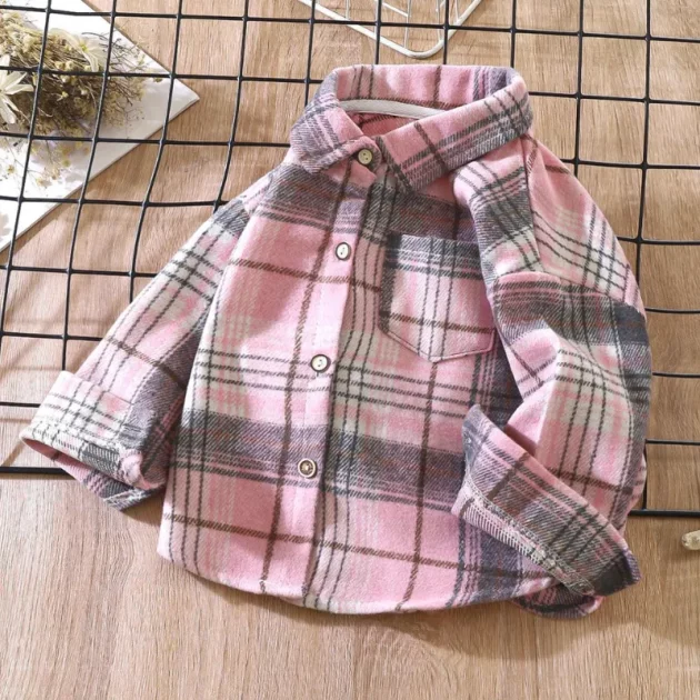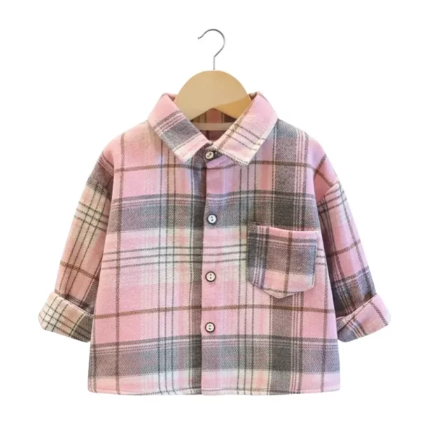Datteren min pleier å mislike lange ermer, men denne flanellen får henne faktisk til å beholde den på. Perfekt for kjølige morgener ved busstoppet.