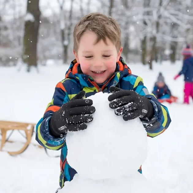 Disse vinterhanskene holder sønnens hender tørre, selv under heftige snøballkriger. Han kan bruke telefonen uten å ta dem av, noe han synes er kjempekult.