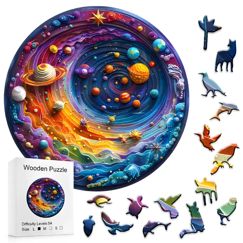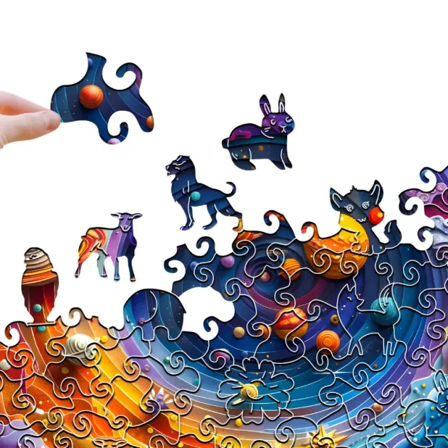 Barn kan utforske galakser og stjerner ved å bygge dette fargerike puslespillet. Hver brikke gir en ny utfordring, noe som gjør leketiden belønnende og morsom. Intrikate former fremmer fokus og vekker uendelig nysgjerrighet hjemme. Foreldre nyter kvalitetstid, vel vitende om at hver økt hjelper unge sinn å vokse.
